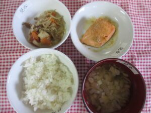 給食とおやつ 10月14・28日 給食・おやつ・延長おやつ 2025.10.14 【給食】 ご飯 鮭の味噌煮 れんこんきんぴら すまし汁(里芋・ねぎ・しめじ) 【おやつ】 マカロニきな粉 【延長おやつ】 五平餅 10月10・24日 給食・おやつ・延長おやつ 前の記事 10月20日 給食・おやつ・延長おやつ 次の記事