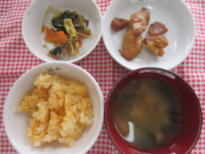 給食とおやつ 11月4・18日 給食・おやつ・延長おやつ 2025.11.04 【給食】 夕焼けご飯 鶏肉の煮物 五目和え 味噌汁(長いも・わかめ・しめじ) 【おやつ】 オムライスおにぎり 【延長おやつ】 苺ケーキ 10月31日 給食・おやつ・延長おやつ 前の記事 11月5・19日 おやつ・給食・延長おやつ 次の記事