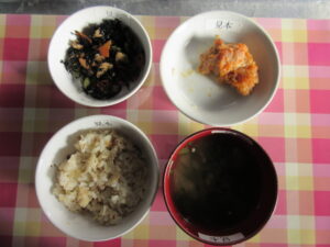 給食とおやつ 1月13・27日 給食・おやつ・延長おやつ 2026.01.13 【給食】 梅さばごはん 鶏肉の香味焼き ひじきの煮物 味噌汁(小松菜・えのき・大根) 【おやつ】 ミートソーススパゲッティ 牛乳 【延長おやつ】 さつまいもケーキ 1月9・23日 給食・おやつ・延長おやつ 前の記事