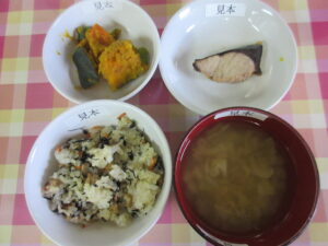 給食とおやつ 2月25日 給食・おやつ・延長おやつ 2026.02.25 【給食】 ひじきご飯 ぶりの照り焼き かぼちゃのそぼろ煮 味噌汁(キャベツ・えのき・もやし) 【おやつ】 蒸しようかん 幼児:クラッカー 乳児:トースト 牛乳 【延長おやつ】 焼きおにぎり 2月17日 給食・おやつ・延長おやつ 前の記事