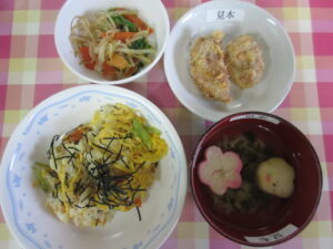 給食とおやつ 3月3日 給食・おやつ・延長おやつ 2026.03.03 【給食】 ちらし寿司 唐揚げ 菜の花のお浸し すまし汁(えのき・わかめ・花麩) 【おやつ】 桜もち ひなあられ 牛乳 【延長おやつ】 マヨ醤油焼きおにぎり 3月2日 給食・おやつ・延長おやつ 前の記事 3月4日 給食・おやつ・延長おやつ 次の記事